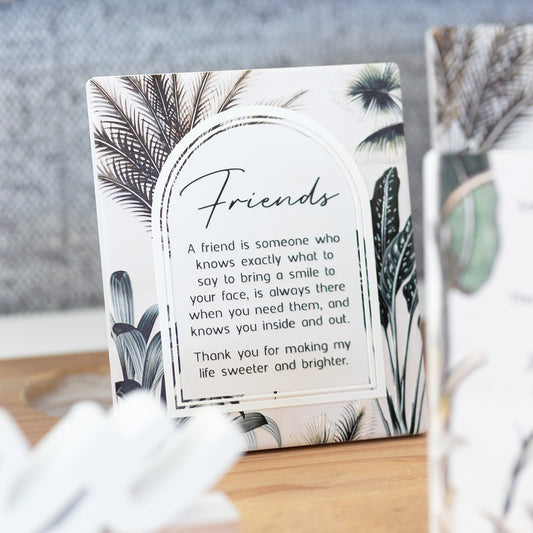 Exotic "Friends" Ceramic Verse Plaque Gift Embossed Stand or Hang In Earthy Tones