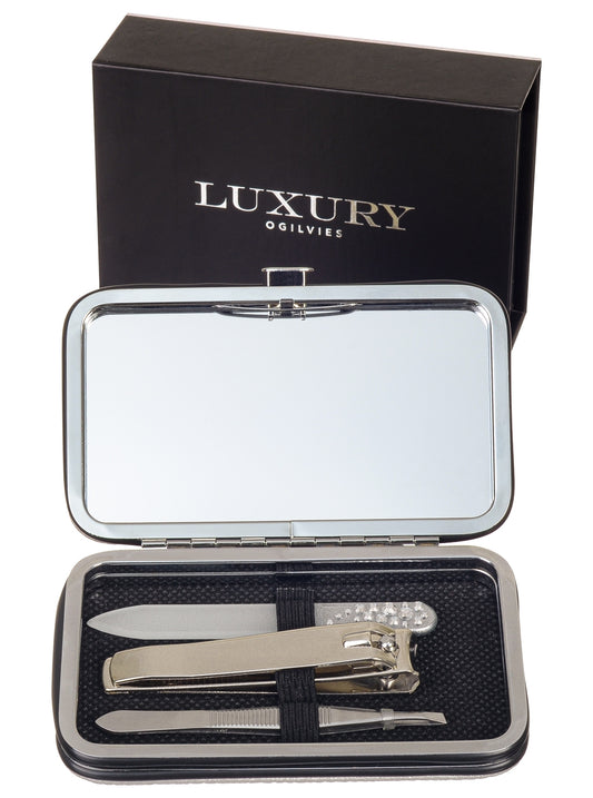 Luxury Beauty Set, Nail File, Nail Cliipers & Tweezers - Black Silver