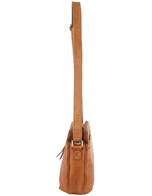 Milleni Ladies Nappa Leather Cross Body Bag - Cognac