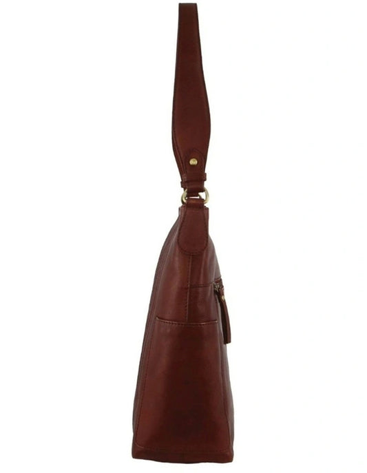 Pierre Cardin Ladies Leather Stitch Design Hobo Bag - Tan