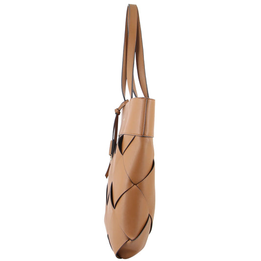 Milleni Ladies Woven Fashion Tote Handbag - Tan