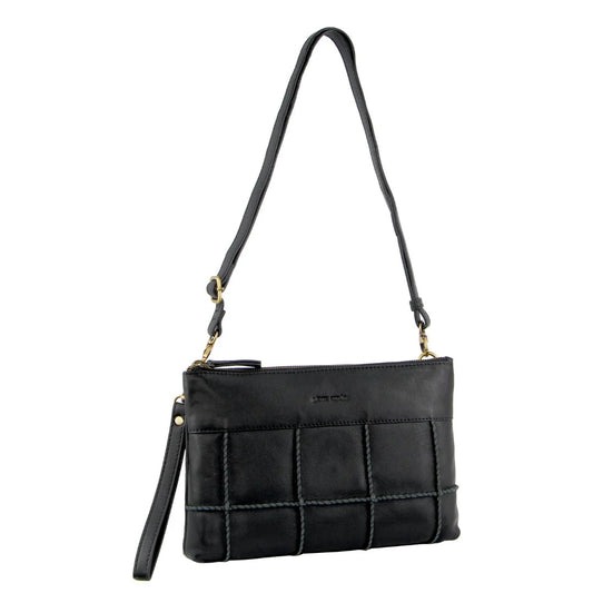 Pierre Cardin Ladies Leather Stitch-Design Cross-Body Bag - Black