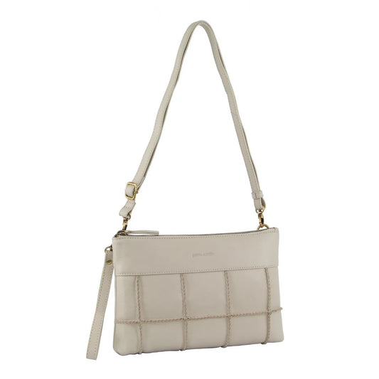 Pierre Cardin Ladies Leather Stitch-Design Cross-Body Bag - Bone