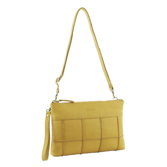 Pierre Cardin Ladies Leather Stitch-Design Cross-Body Bag - Yellow
