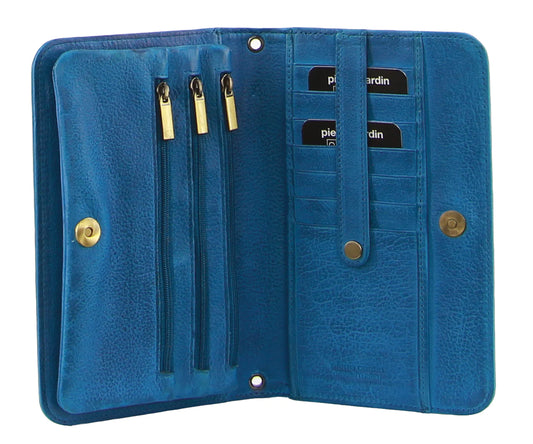 Pierre Cardin Ladies Womens Clutch Leather Wallet Purse - Aqua